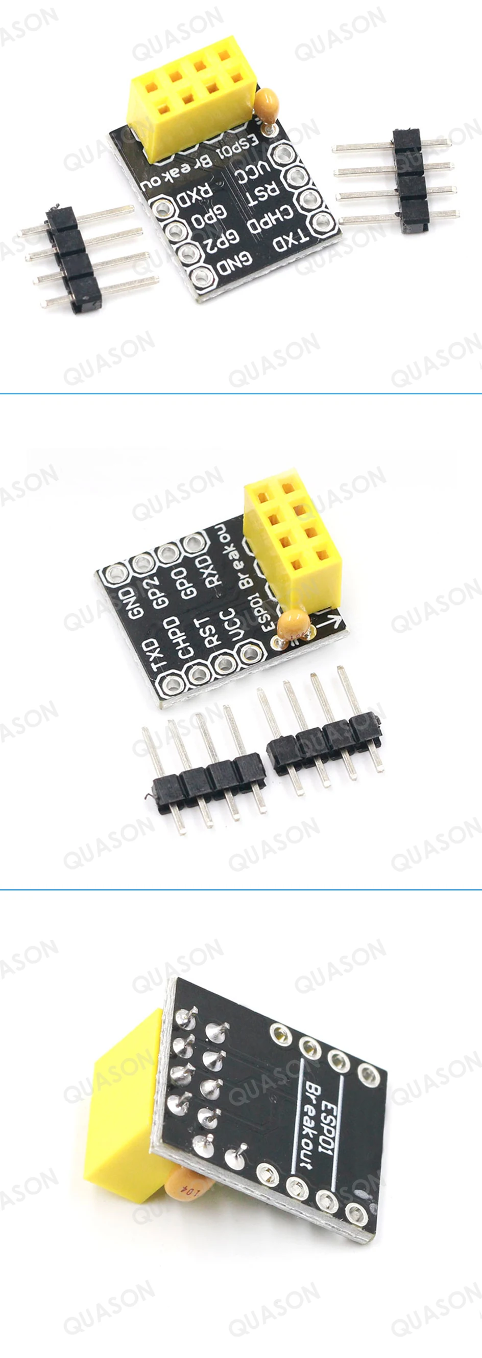 Ponieważ ESP-01pinoutis nie jest przyjazny dla chleba i nie ma tagów , Co sprawia, że szybkie prototypowanie jest niewygodne. Ten adapter do płyty chlebowej pomoże Ci łatwiej tworzyć prototypy przy użyciu esp-01 modułów. Ten przełom jest wygodnie podnoszony u góry, zapewnia przejrzysty przewód zasilający sitodruk , Który dobrze pasuje do Twojej ulubionej płyty chlebowej. Dodaliśmy kondensator oddzielający 0.1uF , Więc ESP-01 zawsze będzie stabilny bieg bez przeszkód.